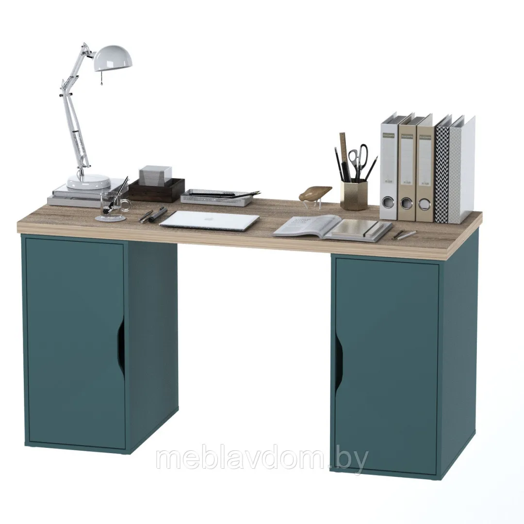 Стол письменный ИНГАР 2/ДВ/ДВ (дуб беленый/серо-бирюзовый)